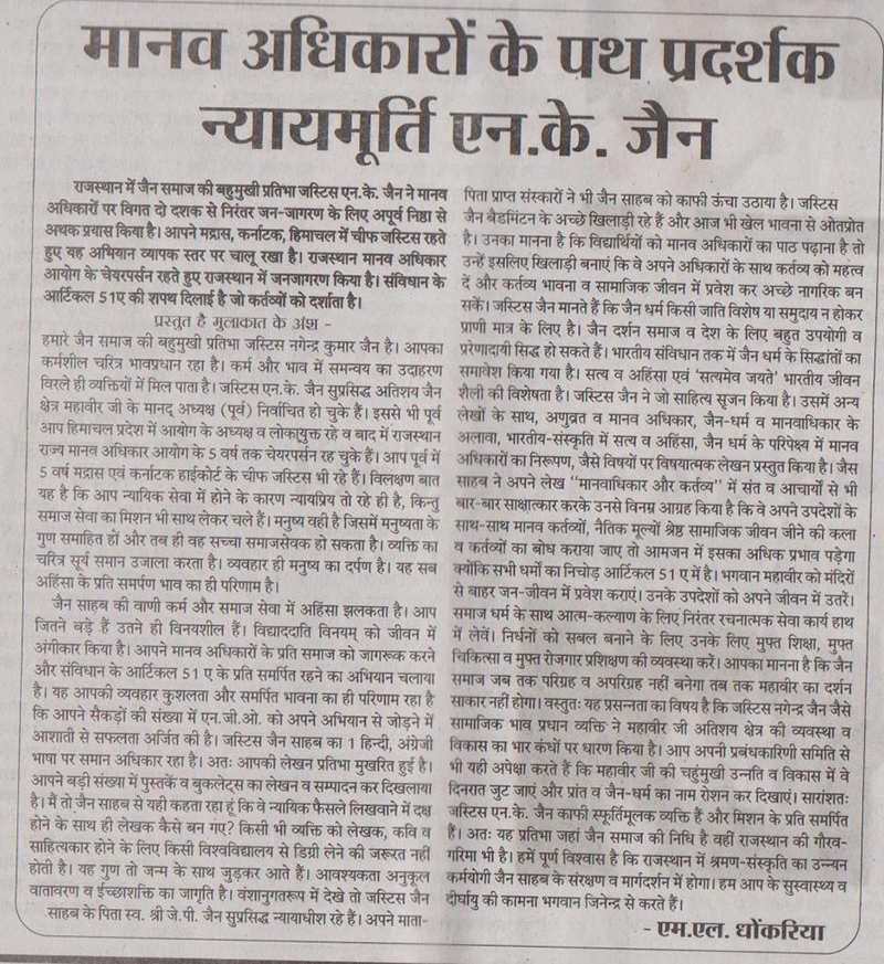 Legal Literacy & Awareness Articles by Justice N.K.Jain